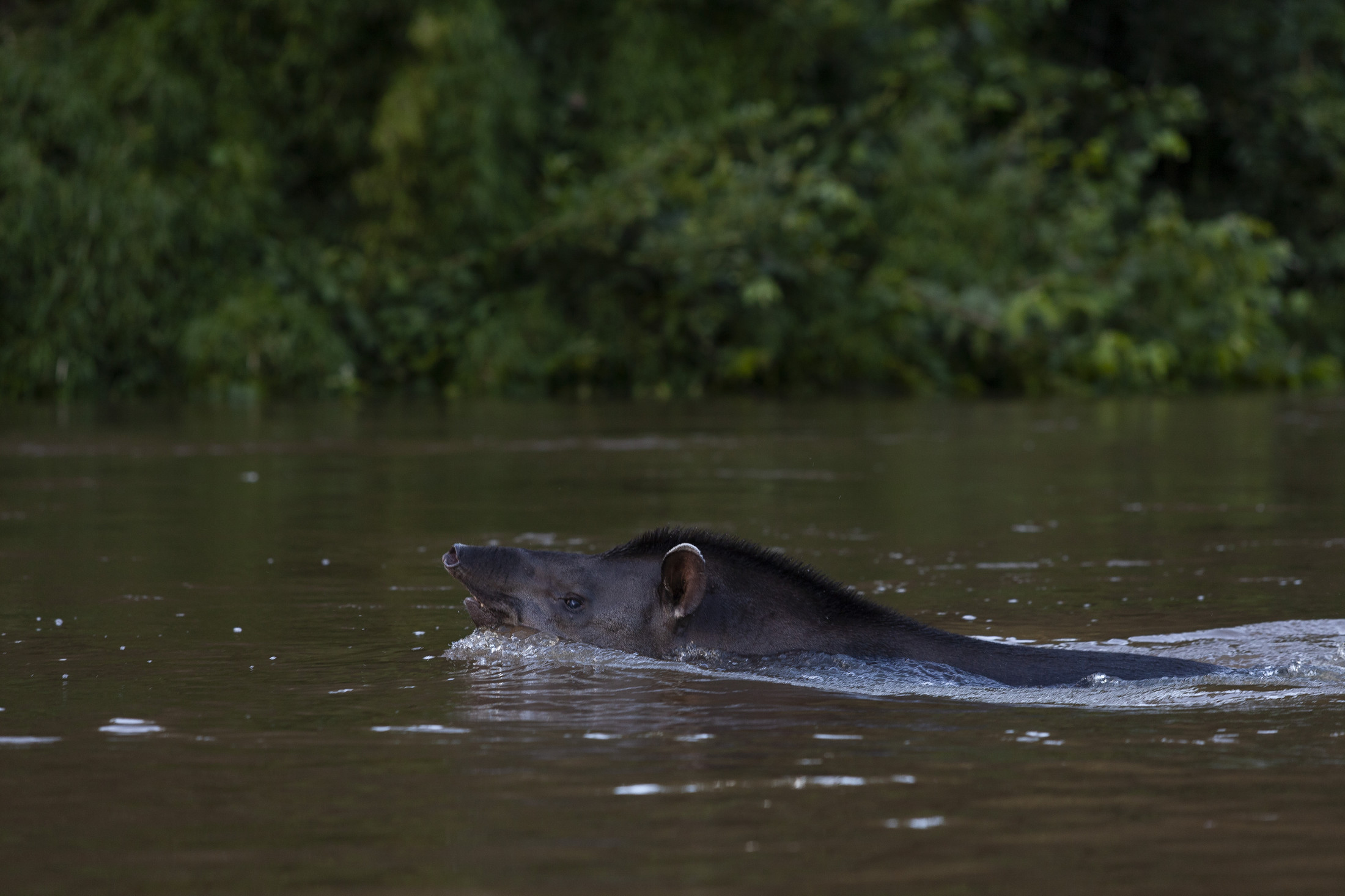 Anta (da espécie Tapirus terrestris) atravessa o rio Itacaiúnas na Floresta Nacional Tapirapé-Aquiri. São pelo menos 44 espécies de mamíferos de médio ou grande porte já registradas no Mosaico de Carajás. FOTO: João Marcos Rosa