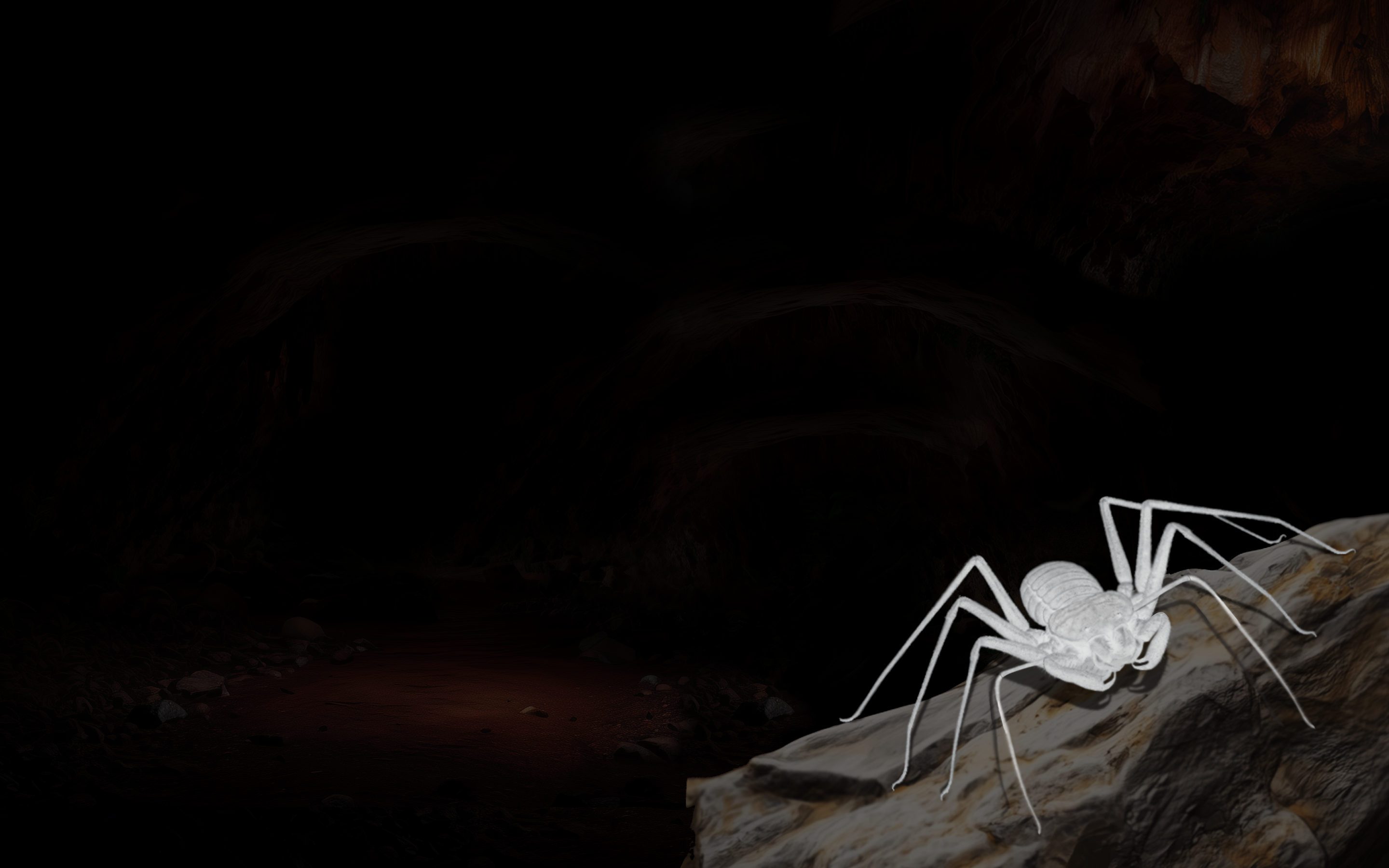 Esse guano alimenta uma biodiversidade pouco conhecida, incluindo os troglóbios, como este amblipígio.