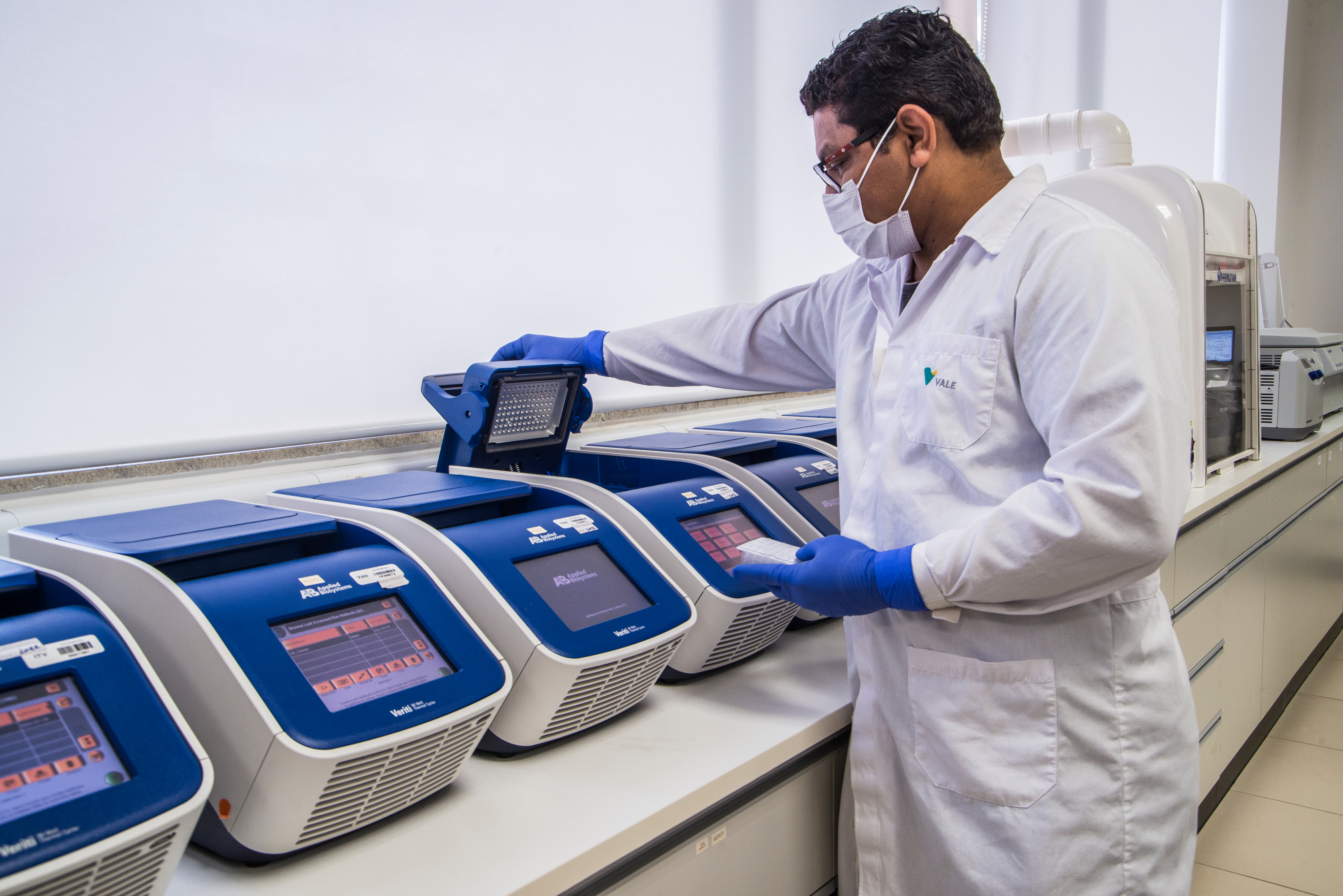 Técnico de laboratório, Manoel Lopes, insere as amostras no equipamento termociclador, etapa essencial para a geração dos códigos de barras de DNA. FOTO: Miguel Aun / Acervo do Instituto Tecnológico Vale